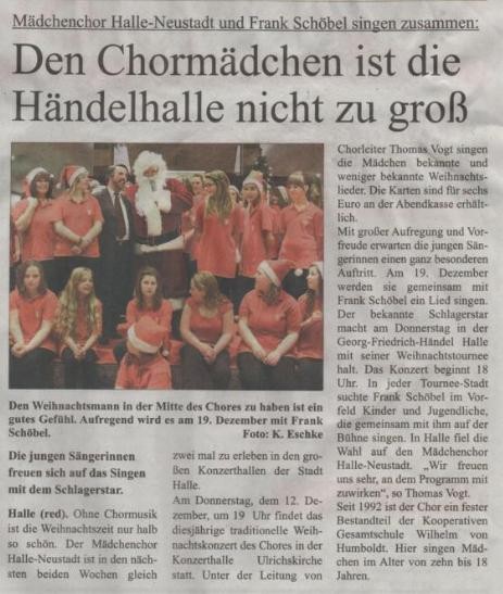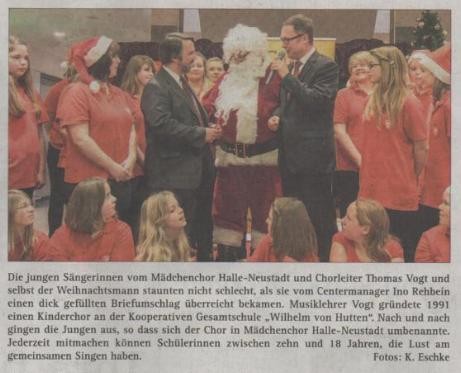 nahe der Commerzbank, wo der Mädchenchor Halle-Neustadt die zahlreichen Wartenden mit Weihnachtsliedern unterhielt.